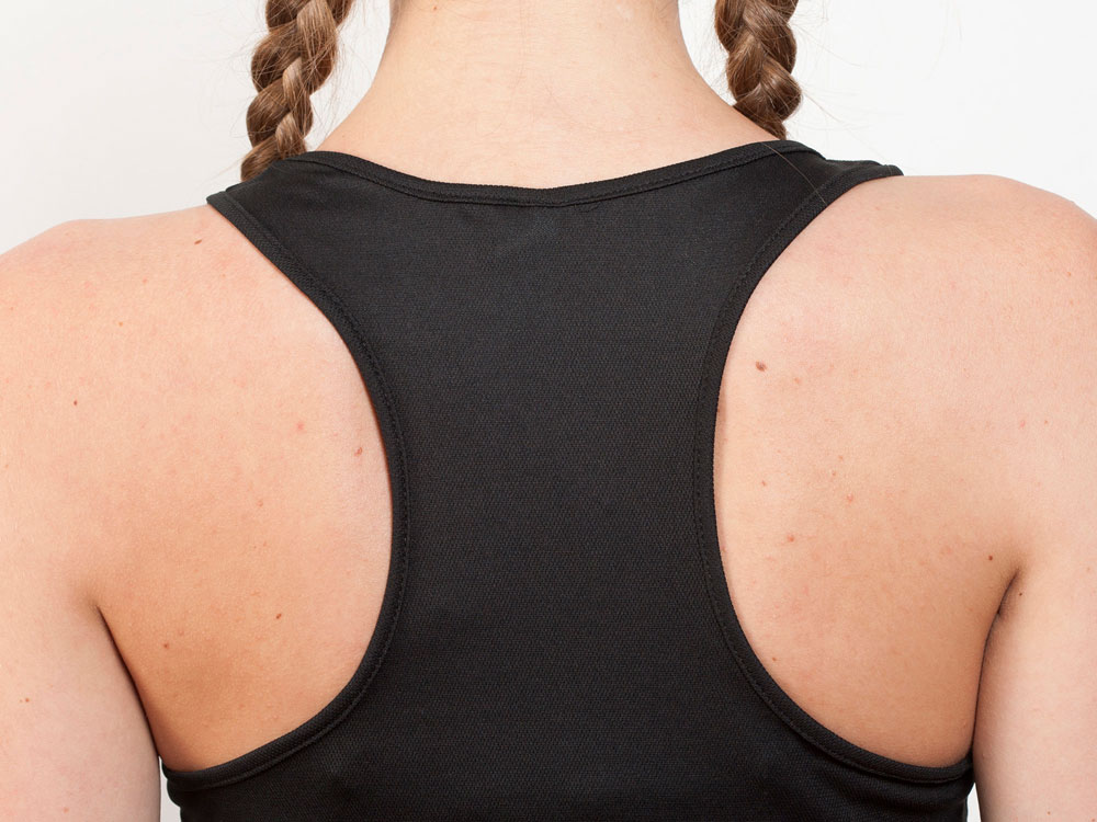 Спортивный топ, горловина и пройма отделаны рибовым полотном. Боковые швы. Технологичное дышащее полотно – легко стирается и быстро сохнет.