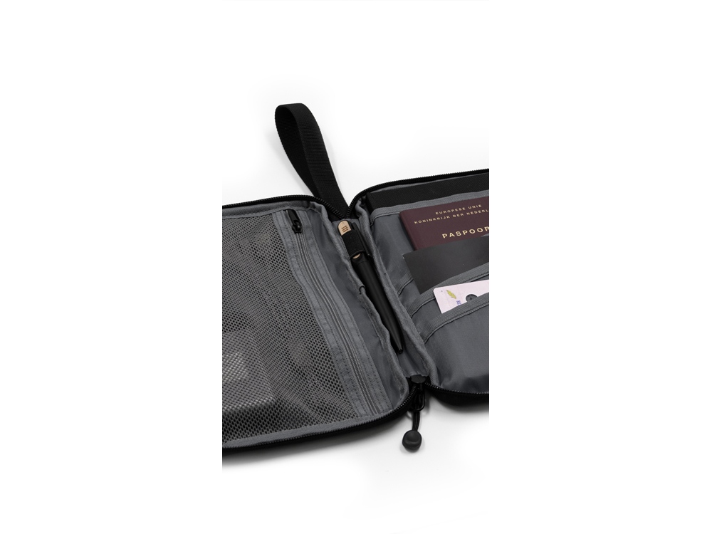 Хороший корпоративный подарок для путешествующих, снабженный многими функциями. Кроме путешествий портмоне можно использовать для хранение карт и документов дома. Выполнен из водостойкого и долговечного переработанного полиэстера с покрытием от загрязнения. Внутреннее отделение вмещает документы формата А5, iPad mini, электронную книгу.