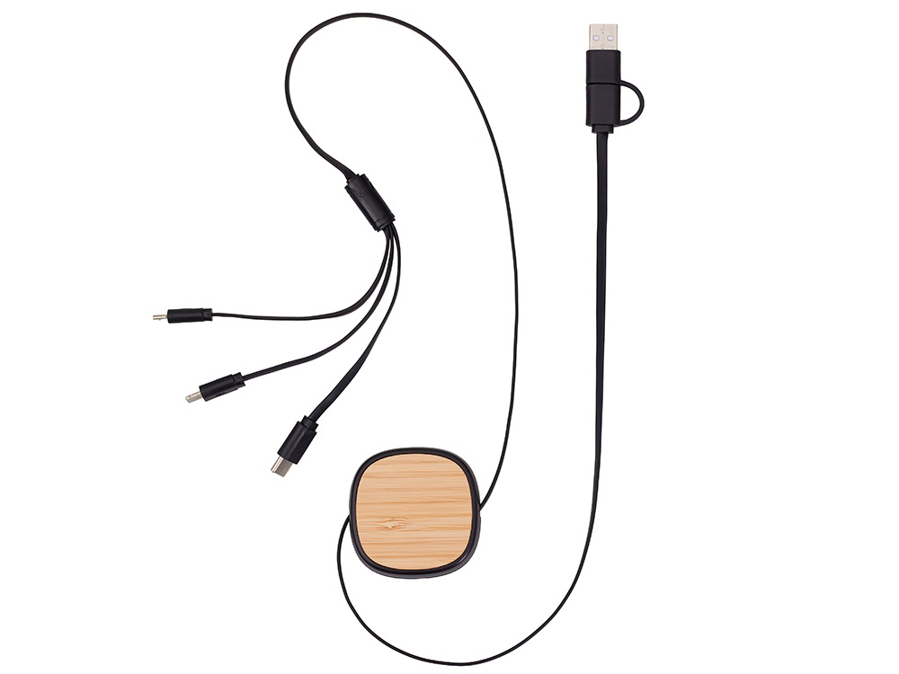 Универсальный кабель с ретрактором 3-в-1 «Retrax» — это стильное и практичное решение для зарядки и передачи данных на ходу. Компактный корпус из экологичного бамбукового покрытия сочетается с удобной системой автоматического складывания, что делает его идеальным спутником в путешествиях, на работе и в повседневной жизни. Кабель оснащён тремя разъёмами: USB-A, Micro-USB и Lightning, обеспечивая совместимость с широким спектром устройств — от смартфонов до планшетов и других гаджетов. Благодаря прочной конструкции и элегантному дизайну, «Retrax» станет незаменимым аксессуаром для тех, кто ценит функциональность и стиль. Поставляется в фирменной коробке bamboo collection.