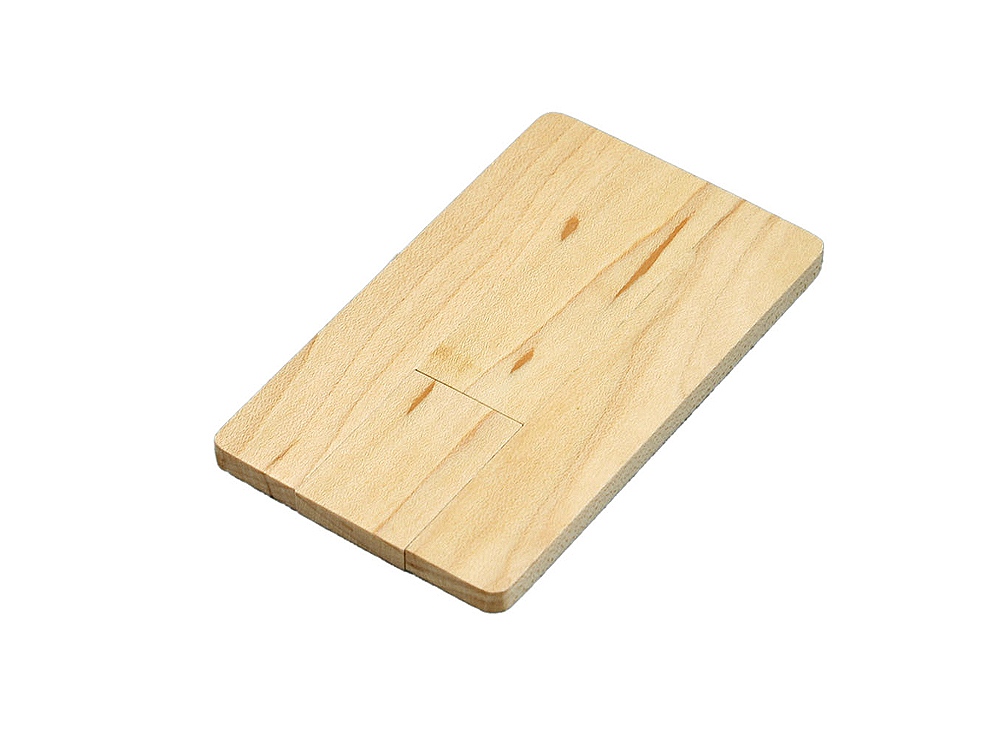 Флеш-накопитель в виде деревянной карточки с выдвижным механизмом, объем памяти 16 Гб. Деревянный корпус.