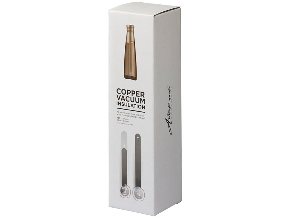 Вакуумная бутылка Duke с медным покрытием. Бутылка Duke изготовлена из нержавеющей стали (класс 18/8) с вакуумной изоляцией. Внутренняя стенка покрыта медью для достижения максимального сохранения температуры напитков: горячих до 12 часов и холодных- до 48 часов. Объем – 500 мл. Нержавеющая сталь.