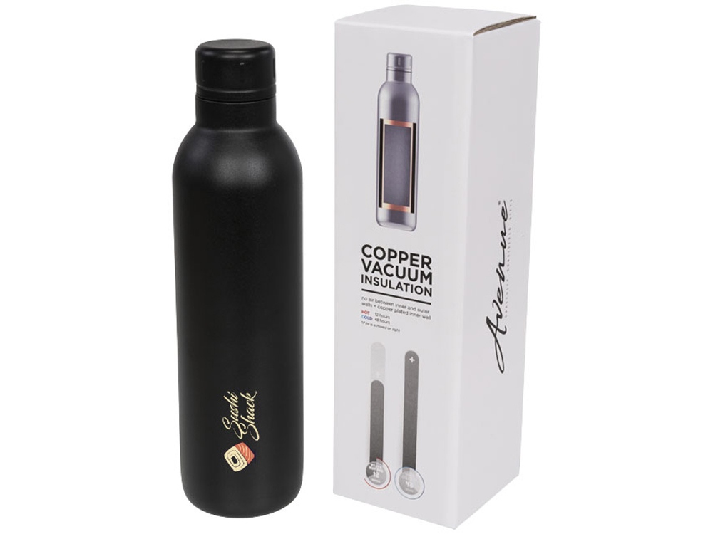 Спортивная бутылка Thor с вакуумной изоляцией объемом 510 мл. Прочная бутылка с двойными стенками из нержавеющей стали и вакуумной медной изоляцией сохраняет напитки холодными в течение 48 часов и горячими в течение не менее 12 часов. Конструкция бутылки предотвращает образование конденсата на внешней стороне. Модное, прочное порошковое покрытие. Герметичная завинчивающаяся крышка из нержавеющей стали. Объем – 510 мл. Предлагается в подарочной коробке Avenue. Нержавеющая сталь.