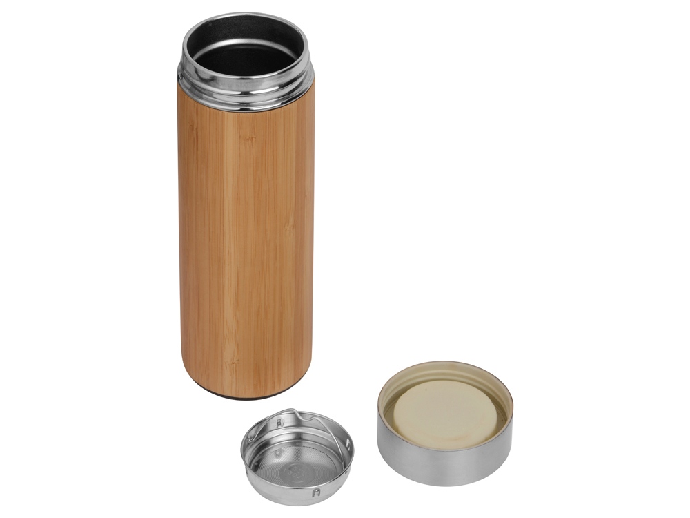 Вакуумный термос с корпусом из натурального бамбука. Благодаря вакуумной изоляции и нержавеющей стали 304 пробы термос удерживает тепло напитков в течение 12 часов. В комплекте имеется съемное ситечко. Компактный, экологичный, стильный. Объем 400 мл.