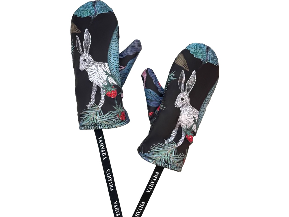 Утепленные варежки с принтом «Зайцы».