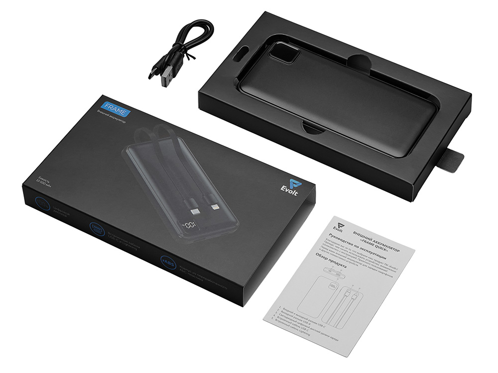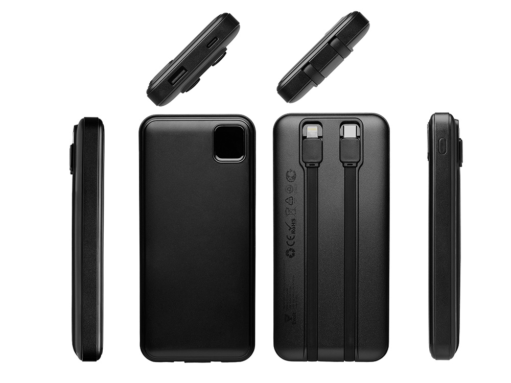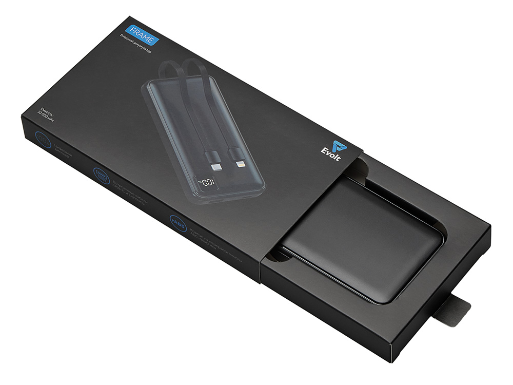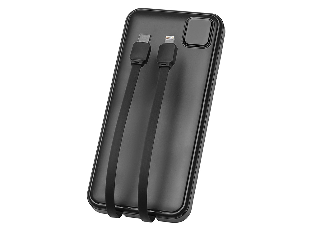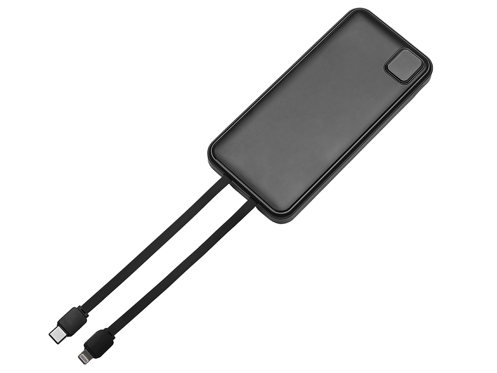 Удобный внешний аккумулятор с встроенными кабелями USB-C и Lightning — ваш надежный партнер в путешествиях, на встречах и в повседневных задачах. Цифровой дисплей в реальном времени показывает точный остаток заряда, а компактные габариты делают его таким же удобным, как смартфон. Прочный корпус из переработанного АБС-пластика и емкость 10000 мАч обеспечивают долгую работу даже при интенсивном использовании. Идеальный выбор для тех, кто ценит комфорт и функциональность в одном устройстве. Продуманная упаковка: для открытия просто потяните за язычок, и появится гаджет с нанесением.
