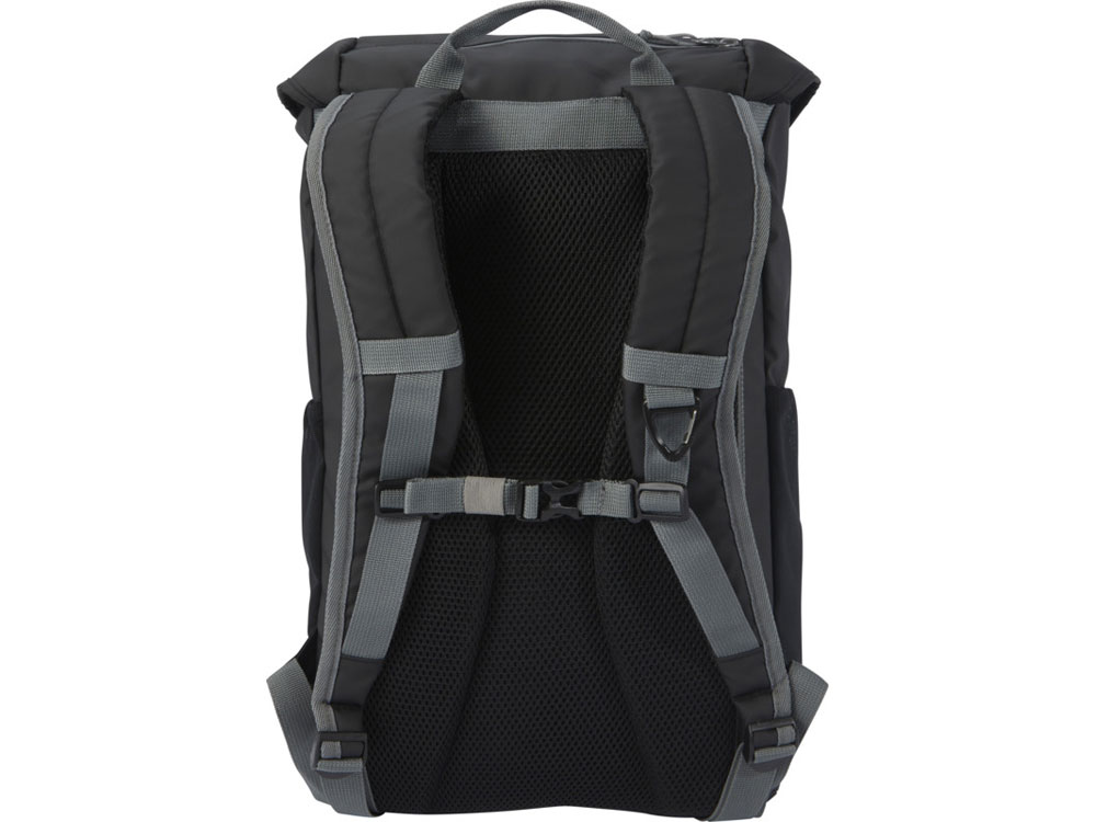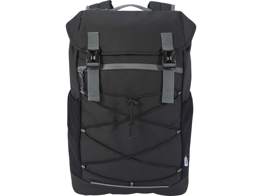 Водонепроницаемый рюкзак для ноутбука, изготовленный из переработанных материалов, сертифицированных согласно стандарту GRS, включая застежки-молнии. Имеет просторное отделение для ноутбука с диагональю экрана 15,6 дюйма со шнуром, а также регулируемые пряжки, чтобы максимально увеличить пространство для хранения под откидной крышкой. Этот рюкзак имеет несколько карманов, в том числе передний карман на молнии с эластичными кулисками для хранения и организации, а также светоотражающую окантовку для видимости. Формованная мягкая спинка и регулируемый нагрудный ремень обеспечивают комфорт даже тогда, когда рюкзак полностью загружен. Из переработанных материалов, сертифицированных по стандарту GRS, изготовлены основная ткань, подкладка, лямки и застежки-молнии. Емкость: 23 литра. Не содержит ПВХ.