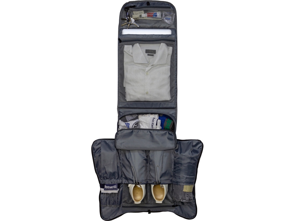 Рюкзак трансформируется в органайзер для одежды благодаря особой конструкции боковых молний. Идеален для путешествий, поездок на выходные и командировок. Упрощает упаковывание и хранение ваших вещей. Просто раскройте молнии, и рюкзак превратится в портплед. Подходит для 1 полного комплекта одежды, обуви и принадлежностей для путешествий. Ткань стойкая к намоканию и пятнам.