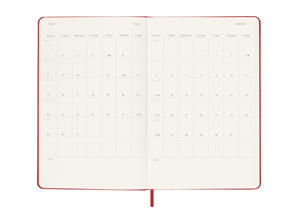 Датированная версия одной из самых популярных записных книжек в мире Moleskine на 2024 год. Страницы на каждый календарный день года позволяют распланировать как рабочие дни, так и выходные. А информационный блок поможет качественно распланировать основные цели и задачи на год и их достичь.