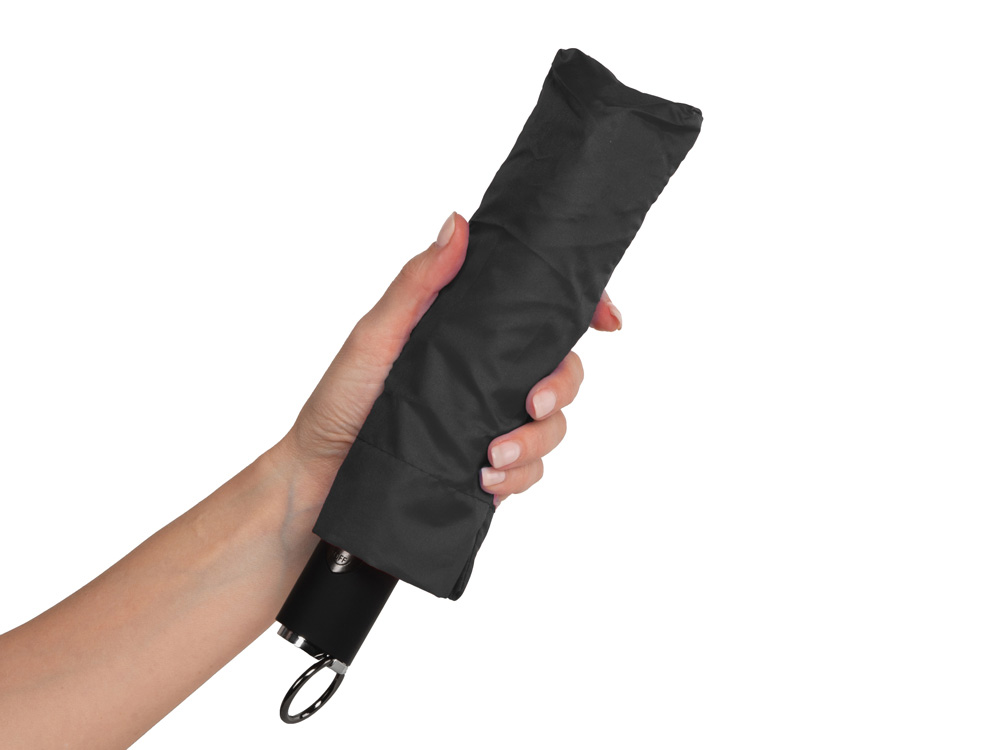 Самый компактный зонт-автомат. Длина в сложенном виде 25 см. Кольцо на ручке удобно для подвешивания зонта при сушке или хранении. Широкий фиксирующий ремешок дает дополнительные возможности для нанесения вашего логотипа.