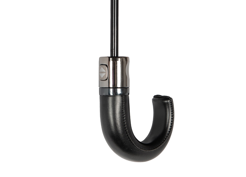 Зонт-автомат для деловых людей отличается стильным лаконичным дизайном с отделкой из искусственной кожи. Благодаря спицам из стекловолокна сможет выдержать порывы сильного ветра. На широкий фиксирующий ремешок можно нанести ваш логотип.