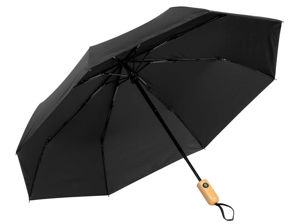 Зонт-автомат с куполом из переработанного пластика — незаменим на случай дождя и сможет выдержать порывы ветра, так как снабжен функцией windproof. На удобной ручке из натурального бамбука есть кнопка открытия и закрытия зонта. Шнурок на ручке предусмотрен для дополнительного удобства — за него можно вешать зонт при хранении и сушке.