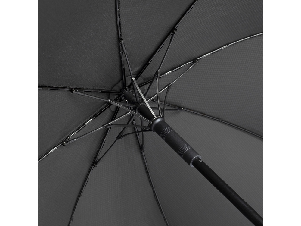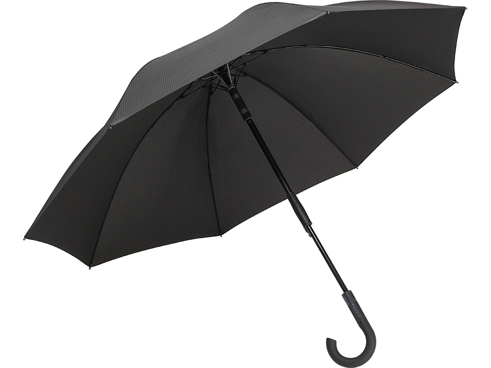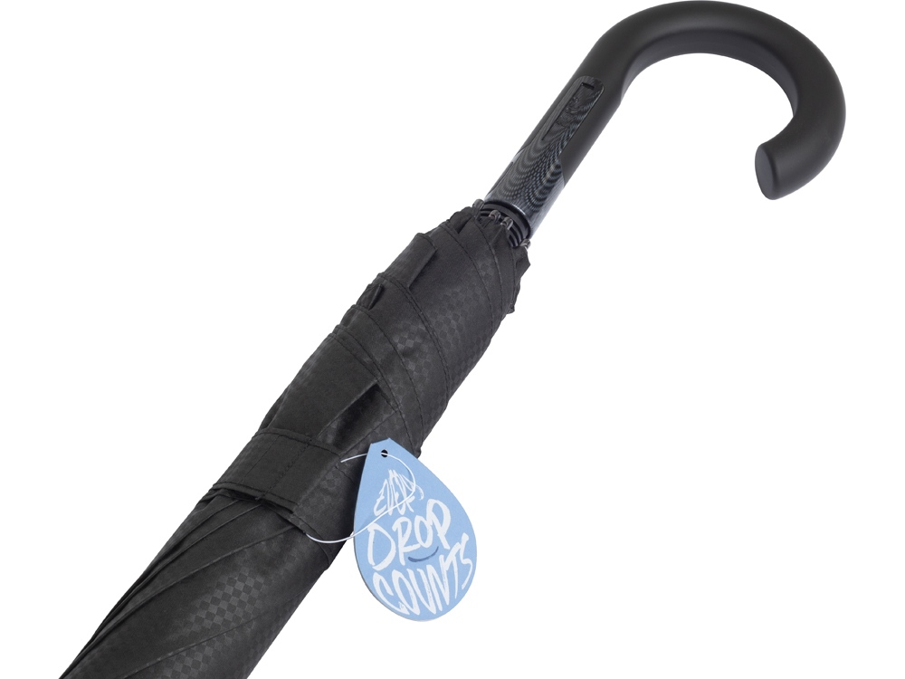 Стильный зонт-трость может укрыть от дождя 2х человек благодаря куполу большого диаметра. Купол изготовлен из эпонжа из переработанного пластика с использованием технологии WaterSAVE, когда окрашивание материала происходит в процессе производства, за счет чего снижает потребление электроэнергии и воды. Зонт плавно открывается при нажатии на кнопку на ручке.
