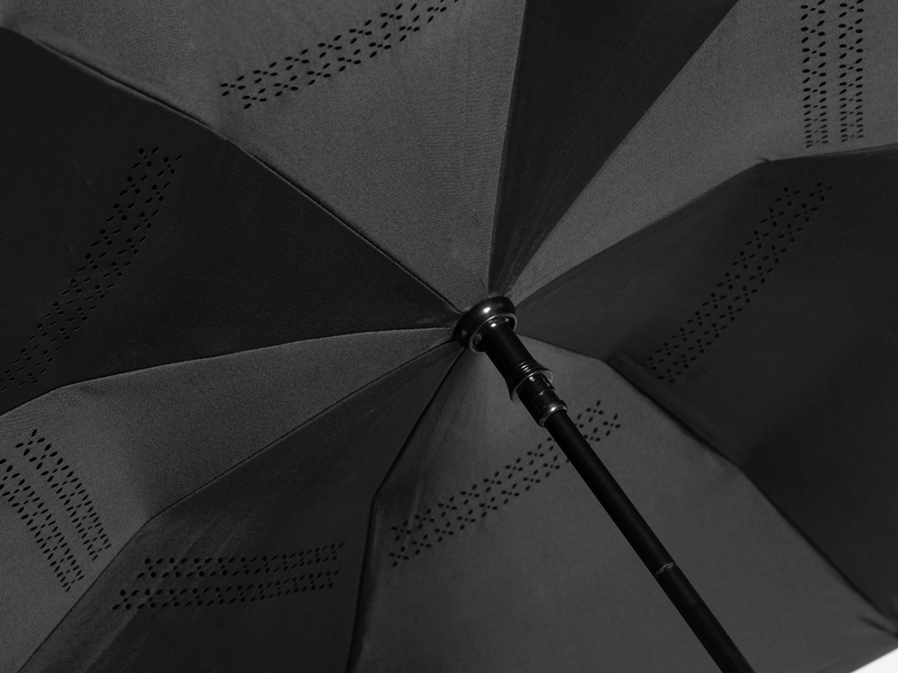 Зонт с обратным сложением складывается “внутрь”. Очень удобен в использовании, например, во время посадки в машину при складывании вода остается внутри купола. Для просушки зонт можно поставить вертикально на пол в сложенном виде, что позволяет воде стекать без раскрытия зонта. Двойной купол из 190Т эпонжа. Ручка с мягким покрытием soft-touch для большего комфорта.